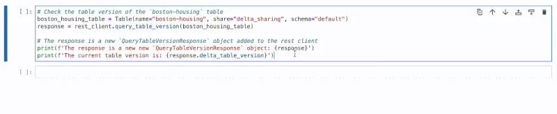 New in release 0.5.0 is an additional function, query_table_version(), that has been added to the Python rest client. This new function allows data recipients to query the version of the shared Delta table. This is a great way for data recipients to quickly check what version of the Delta table they are using.